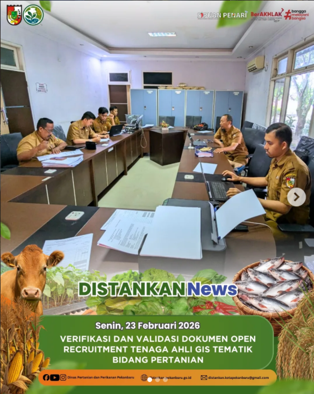 Dinas Pertanian dan Perikanan Kota Pekanbaru melaksanakan kegiatan verifikasi dan validasi dokumen dalam rangka seleksi administrasi Open Recruitment Tenaga Ahli GIS Tematik Bidang Pertanian.