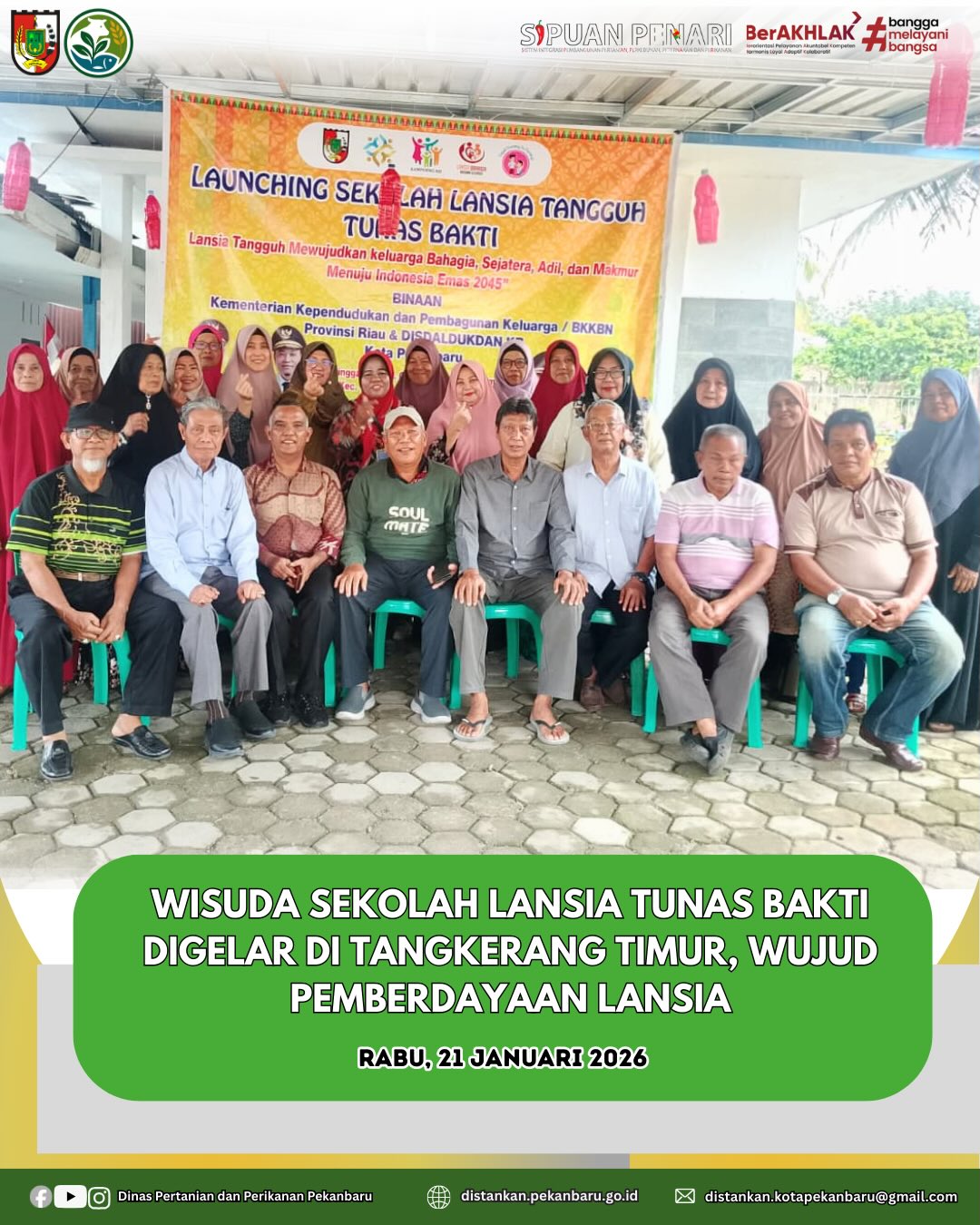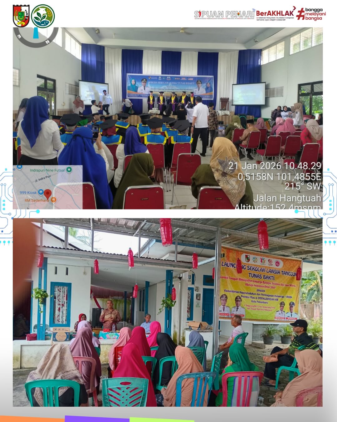 Mengikuti kegiatan Wisuda Sekolah Lansia Tunas Bakti sebagai undangan narasumber. Program Sekolah Lansia ini telah dilaksanakan sejak Juni 2025 di Kelurahan Tangkerang Timur, Kecamatan Tenayan Raya, sebagai bentuk pemberdayaan masyarakat lansia melalui pendidikan nonformal.